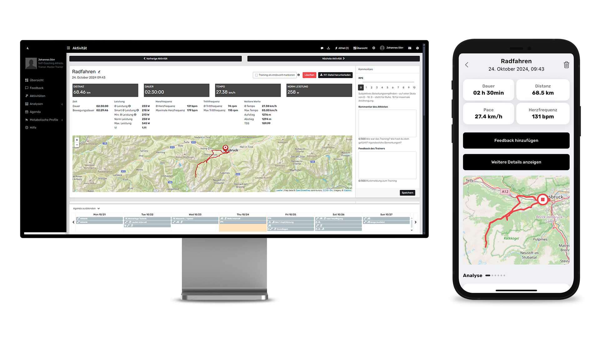 Mit der AZUM App haben deine Athlet:innen alle Trainings- und Basis-Analysen immer dabei. Sie können geplante und absolvierte Einheiten einsehen, den Trainingsstatus anpassen, Feedback geben und über den Chat direkt mit dir kommunizieren. So bleibt alles zentral an einem Ort.