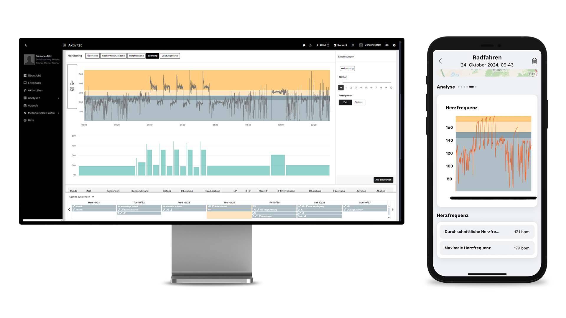 Behalte die Entwicklung im Blick: Mit Zonen-Monitoring, übergeordneten Leistungsentwicklungs-Grafiken und Trainingsabdeckungsberichten siehst du, wie deine Athlet:innen performen. Das integrierte Ampelsystem zeigt dir sofort, ob alles im grünen Bereich ist – oder ob Handlungsbedarf besteht. In der Detailansicht abgeschlossener Trainings findest du alle relevanten Metriken und grafischen Darstellungen auf einen Blick. Zoome in Verlaufskurven, um einzelne Abschnitte einer Trainingseinheit genau zu analysieren.